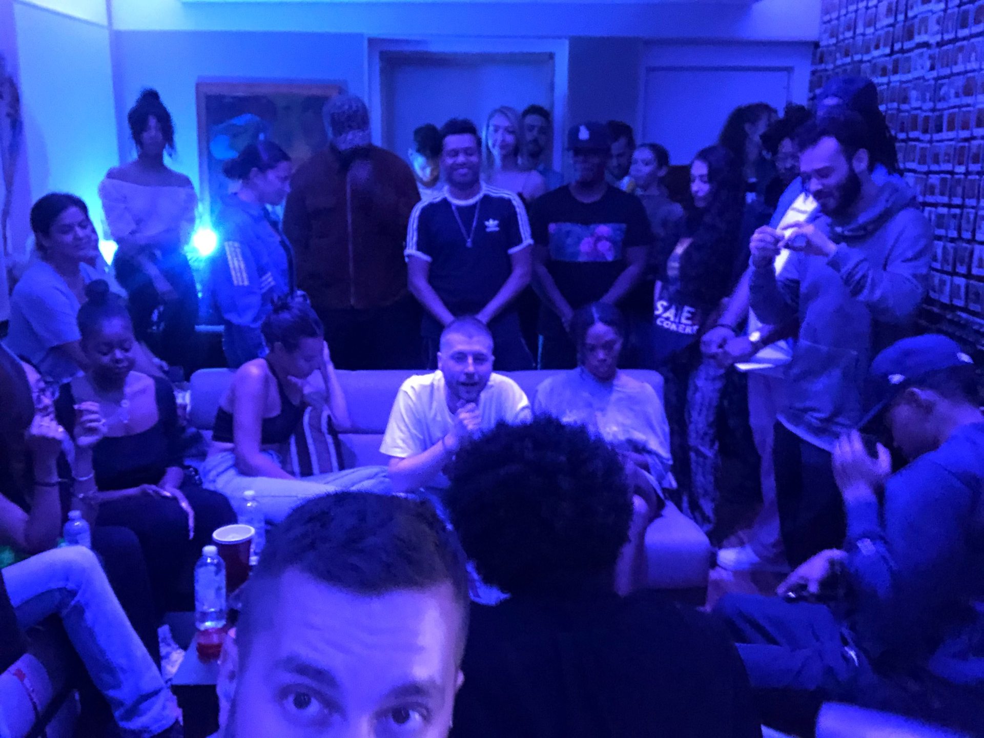 More people started to trickle in about half way through Peter’s album playing. Eventually we decided to drop the music downstairs and have everyone up in the studio together. It got packed. Chance came in along with a few other people I didn’t get the names of anyone besides Lil Rel Howard. There were so many people there I didn’t get a chance to really introduce myself to any of them. We had the room filled with 30+ people at that point and decided to start Peter’s album again.